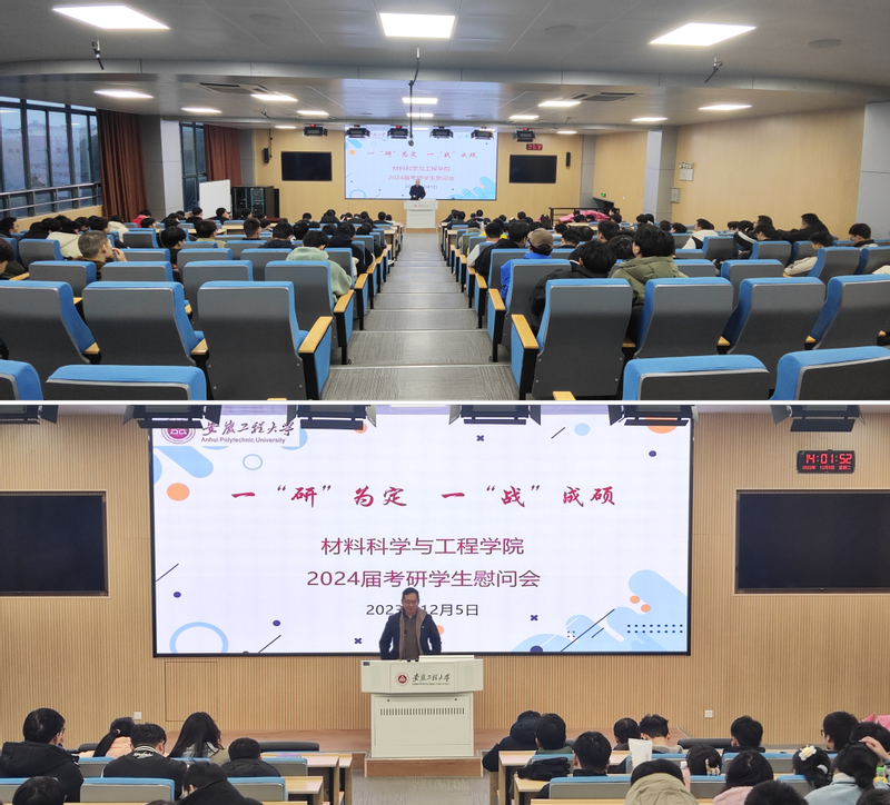 本网讯 2024年全国硕士研究生入学考试在即,为帮助考研学生缓解备考压力,坚定考研信心,积极冲刺迎考,12月5日,材料科学与工程学院在5J217开展2024届考研学生慰问活动。学院党政领导、各系负责人、毕业班辅导员共同为2024届考研学生送温暖祝福。