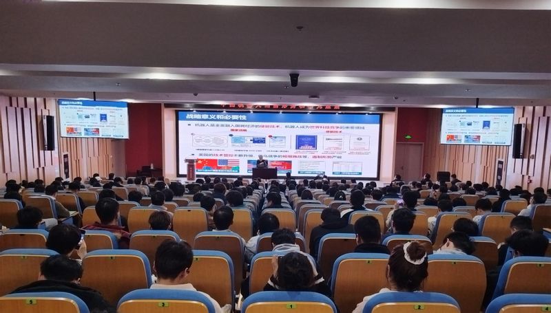 报告会上,赵杰用详实的数据和生动的案例,从当前形势研判、技术发展趋势、重点研究领域、重点专项介绍四个方面阐释了我国机器人发展面临的新变化、新挑战,同时围绕机器人产业链、机器人产业基础能力和产业链水平、机器人核心竞争力、机器人未来国际竞争战略格局等内容进行了详细论述,并就机器人基础前沿技术、核心关键技术、产业发展共性技术、产品与系统技术等问题分享了个人的思考和见解。整场报告会持续近两个小时,内容丰富信息量大,参会师生受益匪浅。
