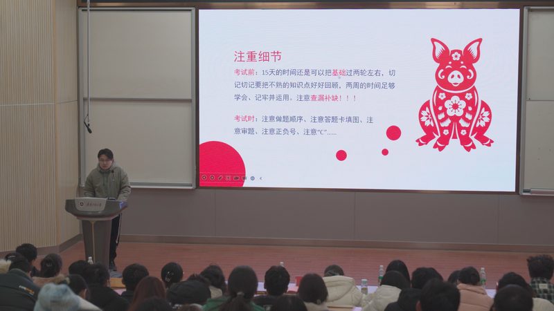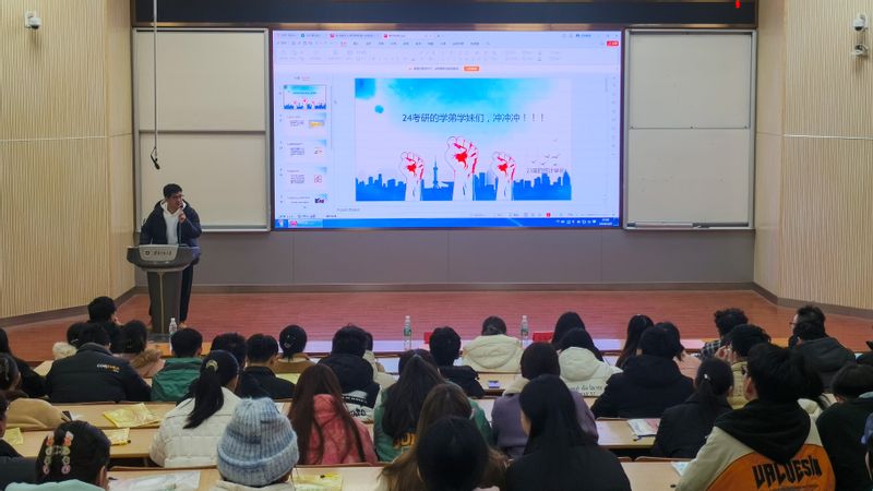 23级数学研究生王子贤和金融工程研究生陈健坤分别分享了备考经验。他们希望同学们冲刺阶段要控制好情绪,学会自我减压;同时分享了备考需要注重的细节、复习重点方向和内容等经验,鼓励大家全力以赴,不留遗憾。
