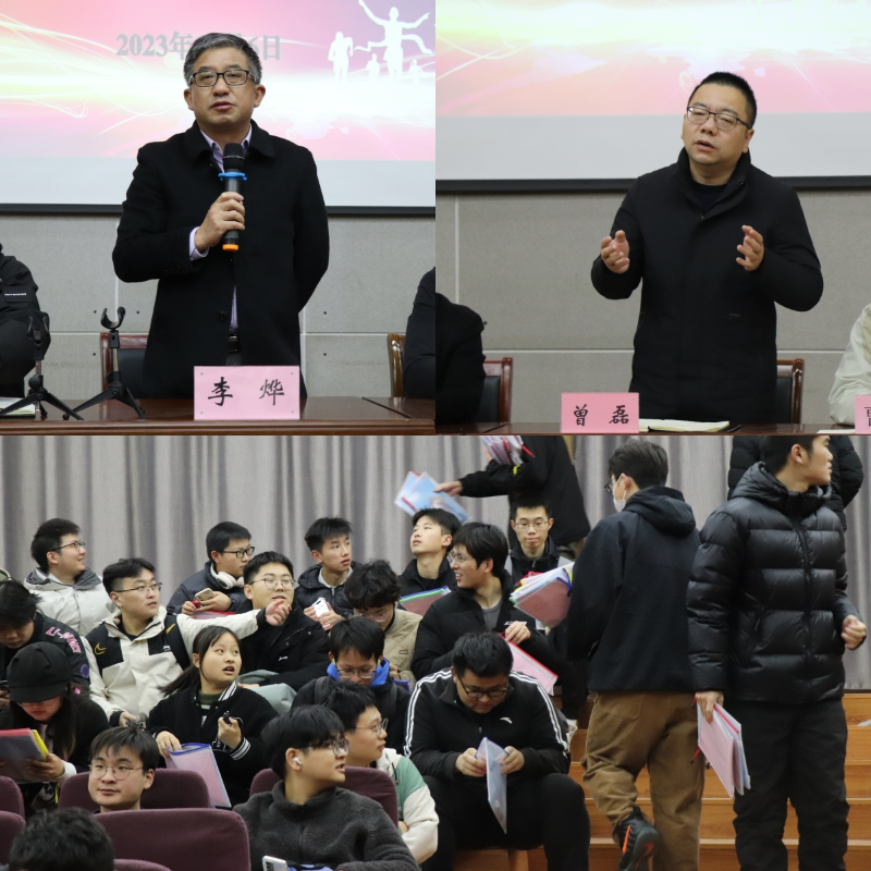 李烨结合考研形势对同学们提出了三点希望,思想上要坚定信心,无论遇到了什么困难,都要抗住压力,坚持不懈;心态上要平稳放松,调整好作息时间,把身体和心理调整到最佳状态;要勇毅前行,大胆往前走,学院始终是同学们的坚强后盾,将会在各方面为学生复习备考保驾护航。他鼓励同学们务必要持之以恒跑完考研战场最后“一公里”,成功上岸。曾磊结合学院历来考研情况,对同学提出三点关心:正确认识考研,从基础开始,扎实学好专业,实现自身的超越;明确考研的初心,建议学生注意复习技巧、分科施策、精准备考、灵活应对;学会坚持,自信迎接考研,同时提醒学生注意保暖和个人生活作息,合理调整好自身心理和身体状态;