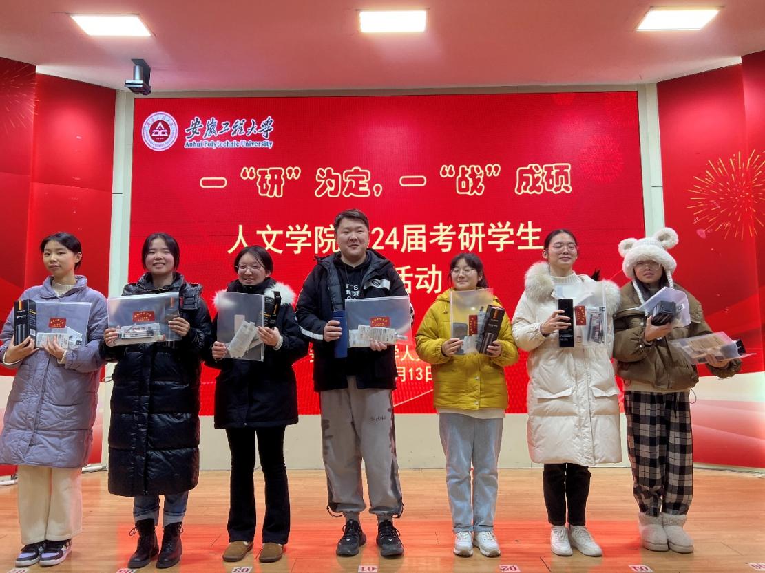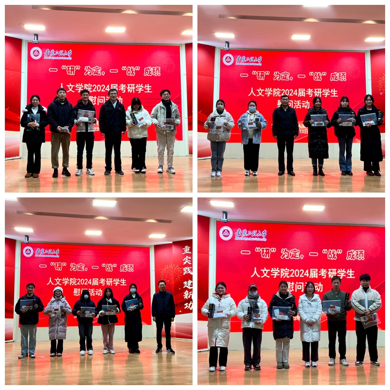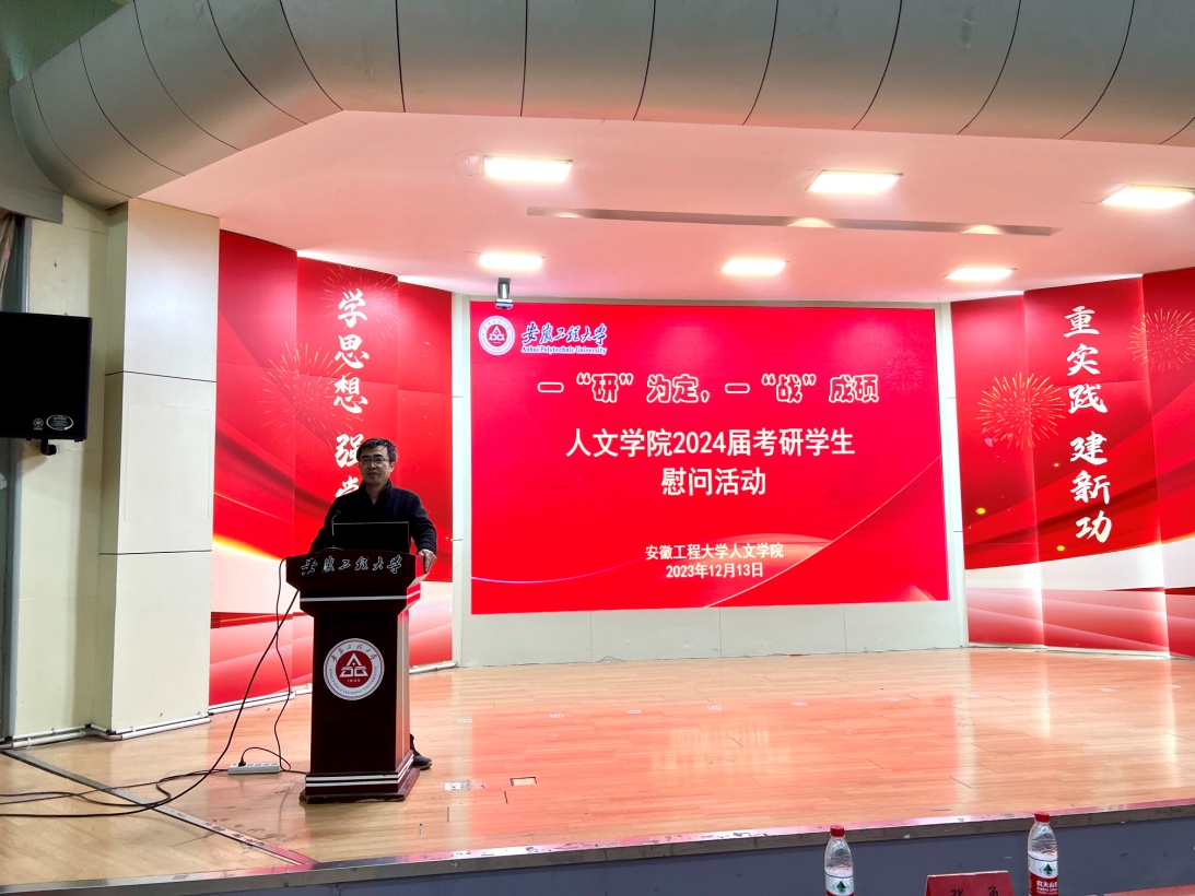 本网讯 在2024年全国硕士研究生招生考试即将到来之际,为缓解备考压力,坚定考研信心,12月13日,人文学院在学术报告厅开展2024届考研学生慰问活动。人文学院党委书记刘一、副院长张勇、副院长邹俊、毕业班辅导员章雪平,以及2024届全体考研学生参加了本次活动。活动由学院团委副书记利昕云主持。