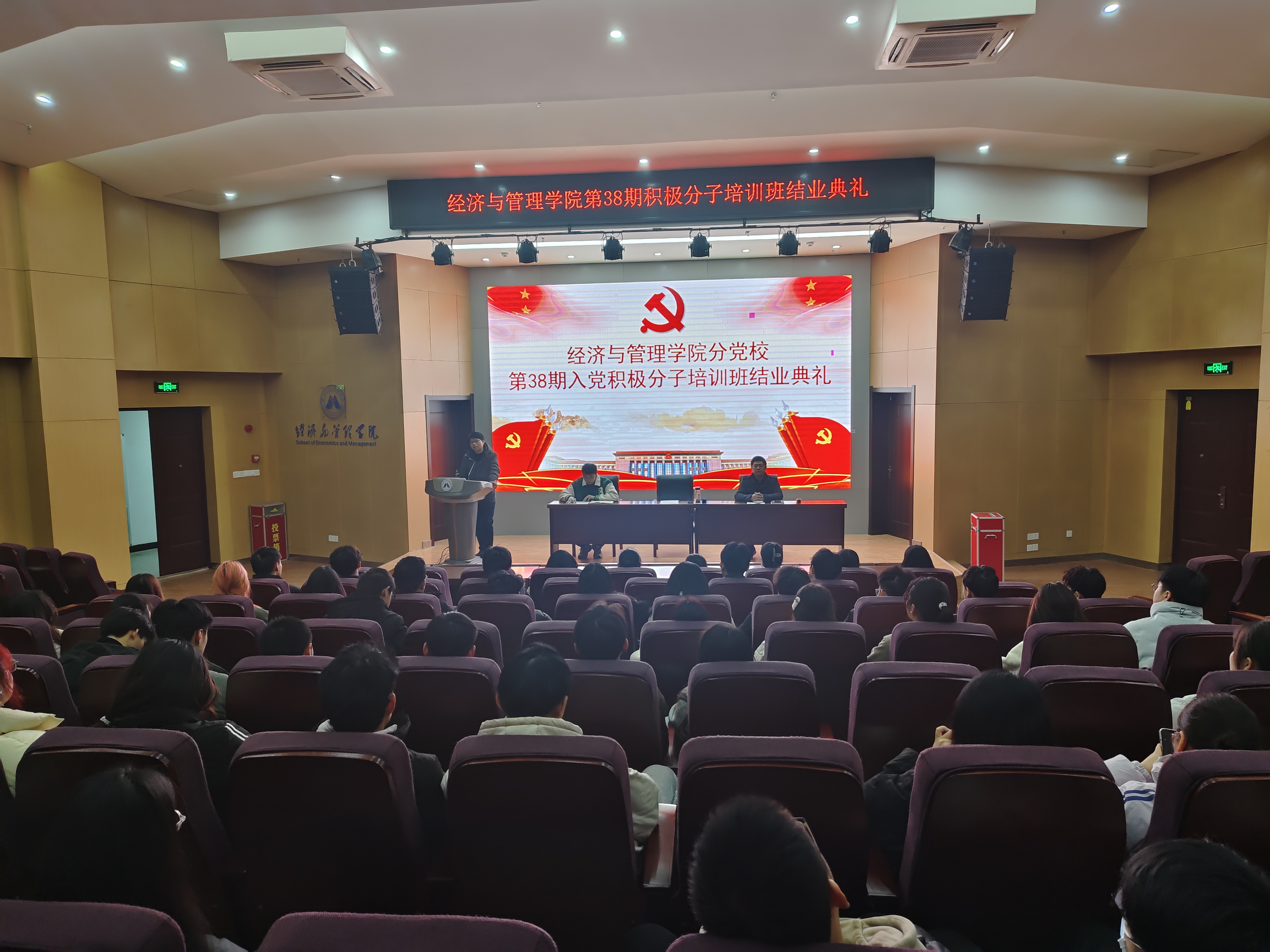 在庄严的国际歌中,经济与管理学院分党校第三十八期入党积极分子培训班结业典礼圆满结束。