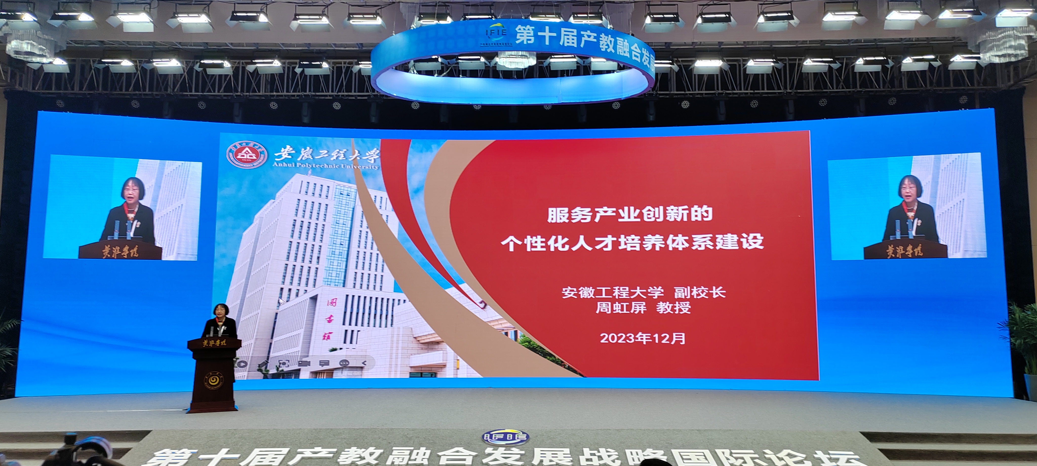 本网讯 12月14日至16日,第十届产教融合发展战略国际论坛在河南驻马店市举行。副校长周虹屏应邀参会,并围绕“服务产业创新的高水平应用型人才培养体系建设”作专题报告。