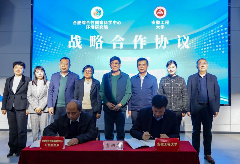 本网讯 12月19日,学校与合肥综合性国家科学中心环境研究院共建的“先进环保装备研发技术协同创新中心”签约暨揭牌仪式在合肥举行。中国工程院院士、环境研究院院长刘文清,中国科学院合肥物质科学研究院院长刘建国,芜湖市副市长朱的娥,省发改委全国综合性国家科学中心处处长方秀,省科技厅推进发展处处长殷黎莉,合肥市蜀山区委书记王海霞等领导出席活动并致辞。我校党委副书记、校长卢平,党委常委、副校长凤权,办公室、科技处、化学与环境学院代表参加。签约暨揭牌仪式由环境研究院副院长邢献军主持。
