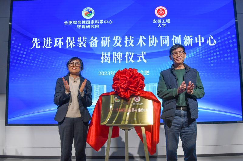 活动现场,刘文清和朱的娥为协同创新中心揭牌,合肥综合性国家科学中心环境研究院与9家中国环境谷入驻企业共建企业技术创新服务中心的签约。