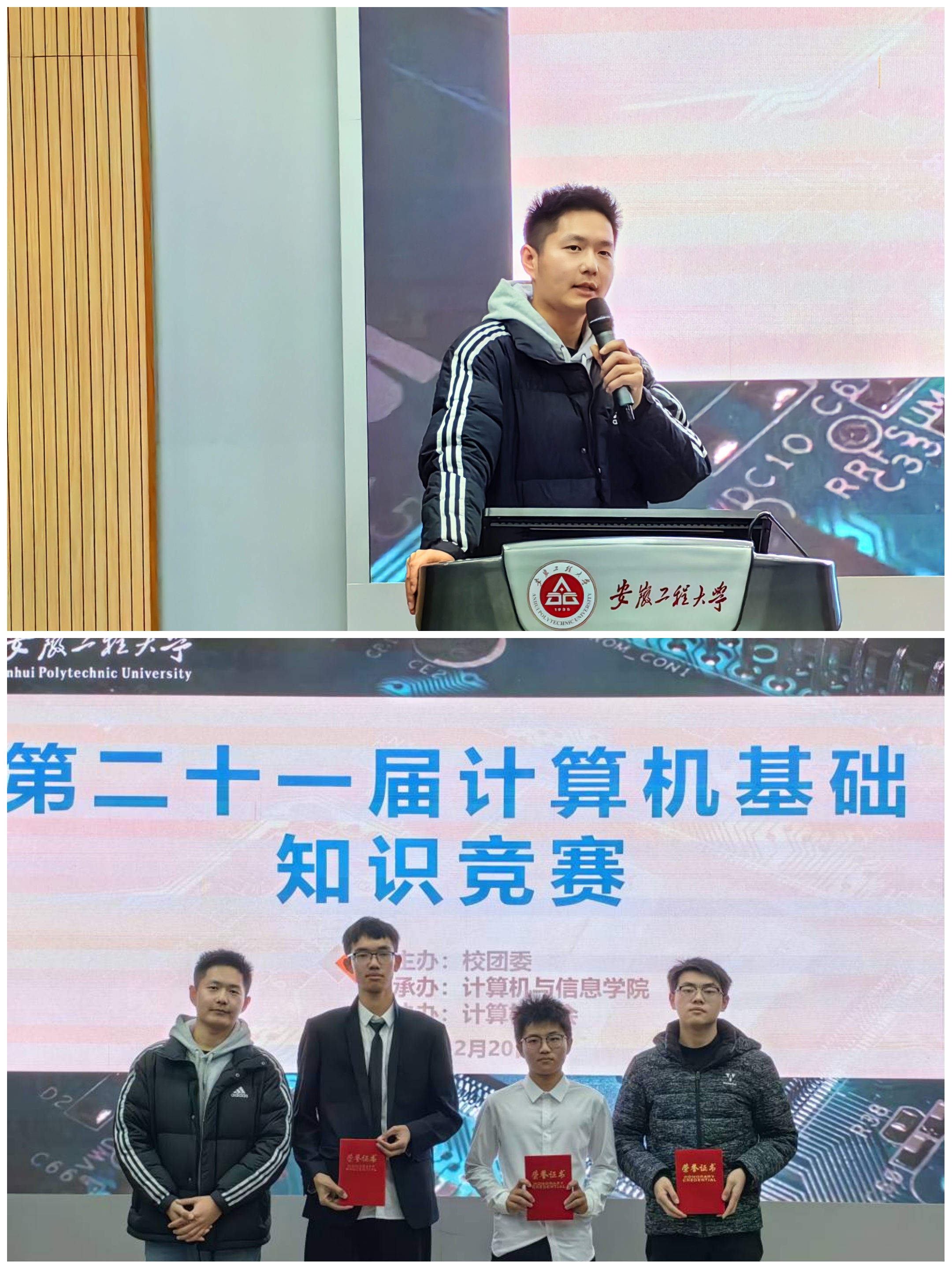 本网讯 为持续推进“三全六专”育人实践,营造浓厚校园学习氛围,进一步深化“以赛代练,以赛促学” 理念,由校团委主办、计算机与信息学院承办,学校第二十一届计算机基础知识竞赛决赛于12月20日举行。电气工程学院代表队获一等奖,材料科学与工程学院代表队、经济与管理学院代表队获二等奖,计算机与信息学院代表队、机械工程学院代表队、生物与食品工程学院代表队获三等奖。
