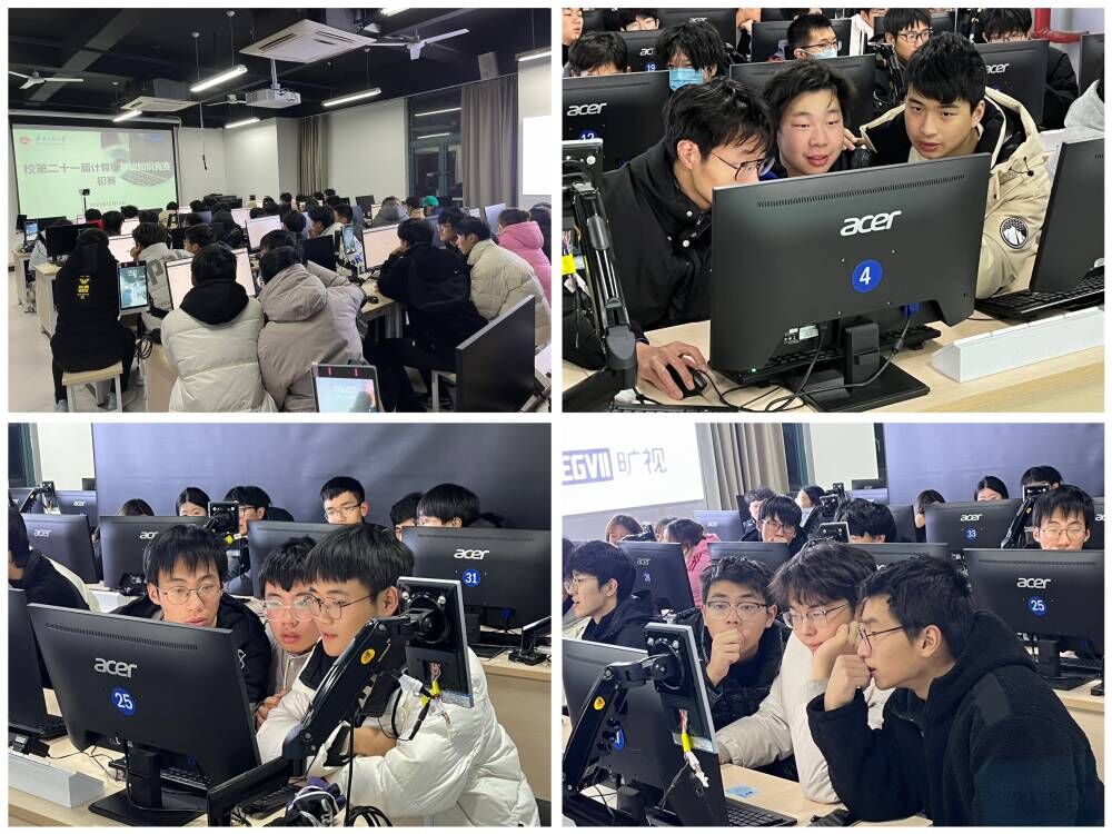 本次比赛分为初赛和决赛两个阶段。为培养学生团队协作能力,初赛由各学院选派三人,组成一队,于12月15日在C座601机房进行线上答题,排名前12名的队伍进入决赛。