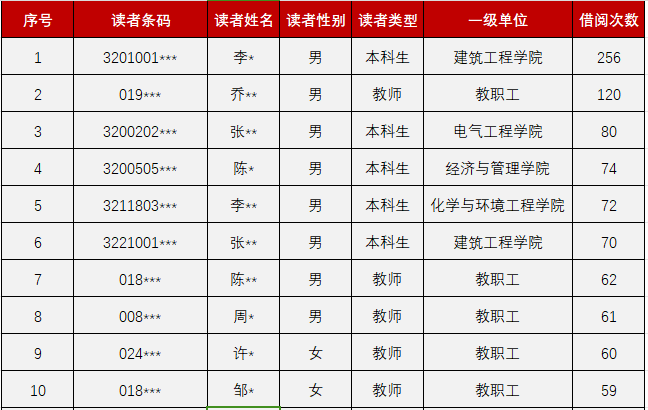 图7:个人借阅排行Top10
