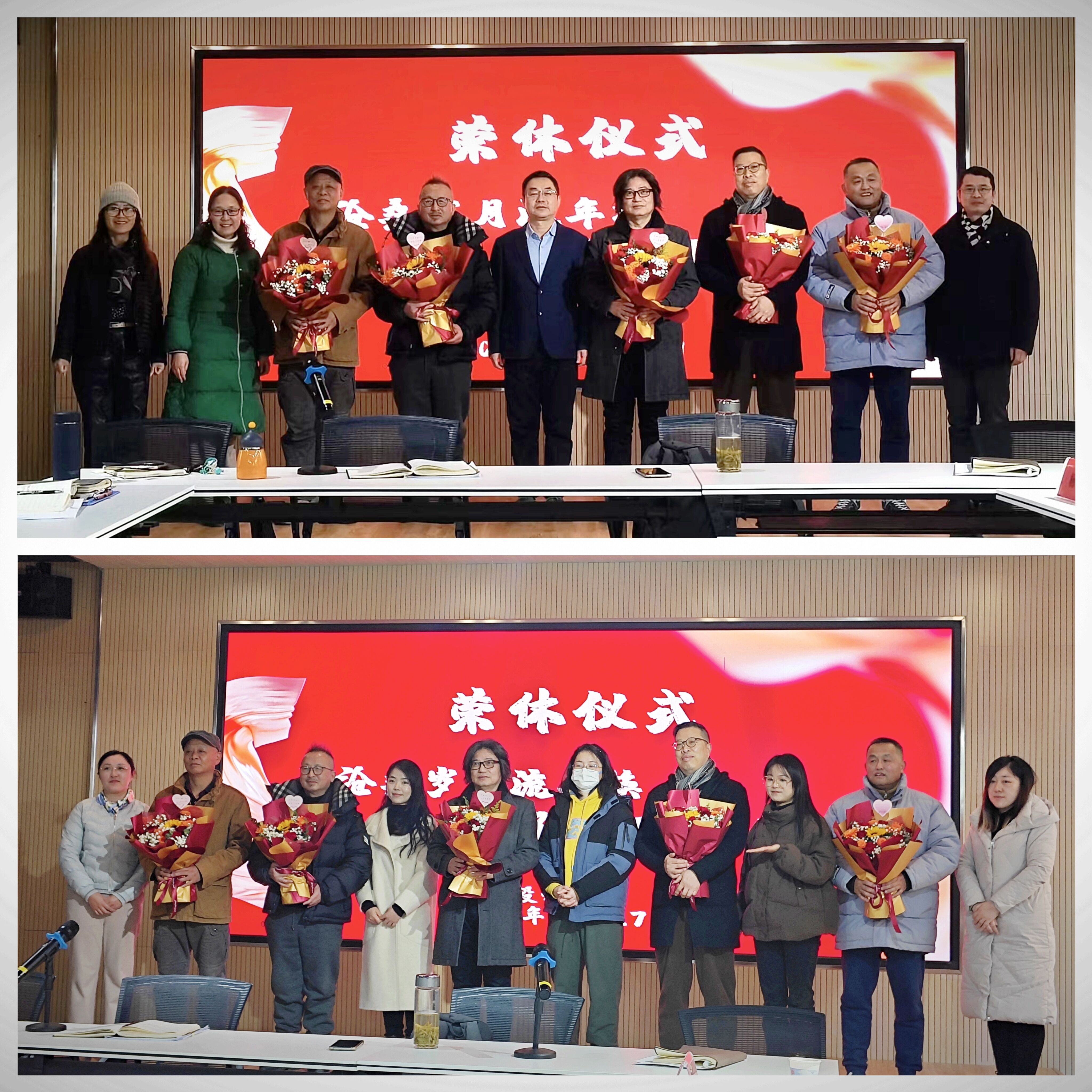 本网讯 12月27日,设计学院党政领导和全体教职工齐聚一堂,在充满温馨与祝福的气氛中,为近两年退休的七位老教师集体举办荣休仪式。仪式由学院党委副书记彭海燕主持。