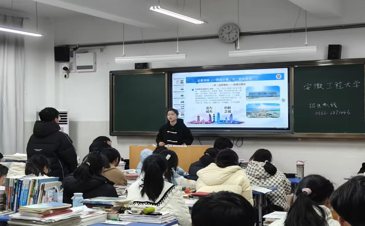 团队成员拜访了高中老师,与老师展开交谈,分享了进入大学以来的收获以及对未来大学生活的规划,具体介绍了学校的招生政策、学校及学院历史、专业情况、校园环境等。他们走入班级、走上讲台、走进学弟学妹中间,分享大学经历、讲述成长故事、宣传大学精神、传播校园品牌,并向学弟学妹介绍了我校情况。针对学生关切的高考备考问题,团队成员结合亲身经历,分享高考备考学习方法、压力应对方法来缓解学弟学妹们紧张心理,以个人在大学生活和学习中的成长变化,鼓励大家以昂仰斗志、饱满精神全身心投入复习备考当中,让学生对美好大学生活产生向往。学弟学妹们积极提问,志愿者们也一一作答,提供查询网址等信息,并留下联系方式便于后期交流。