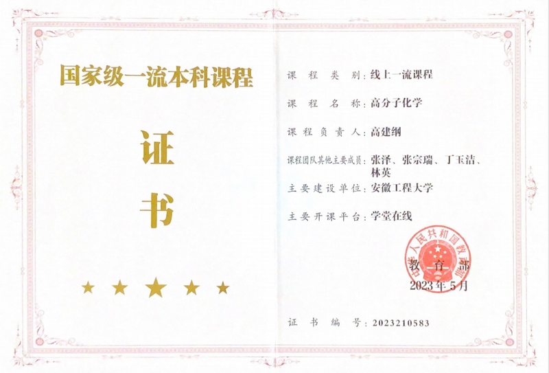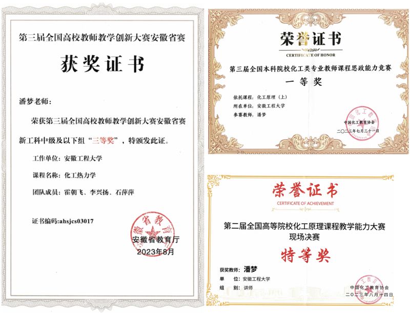 这一年,学院紧紧围绕立德树人根本任务,加强教育教学改革,推进产教融合,推动教育教学内涵式发展迈出“新台阶”。荣获省级教学成果一等奖1项,潘梦老师获全国教学能力竞赛特等奖1项、全国课程思政能力竞赛一等奖1项、省级青年教师教学竞赛三等奖1项。加强应用化学、化学工程与工艺专业国家级一流专业建设点建设工作,补齐短板、对标建设;《高分子化学》课程获批国家级一流本科课程,《结构化学》获批省级课程思政示范课程,《化工热力学》课程获批省级一流课程;获批省级教材建设项目1项。获第二十五届中国机器人及人工智能大赛一等奖,第十六届全国大学生节能减排社会实践与科技竞赛三等奖2项;获第十七届全国大学生化工设计竞赛二等奖、三等奖各1项,获第十届安徽省大学生课外学术科技作品竞赛二等奖3项、三等奖2项,获第九届安徽省“互联网+”大学生创新创业大赛银奖2项,获第二十五届中国机器人及人工智能大赛省赛二等奖1项、三等奖2项。本科生参与发表学术论文30篇,获准专利数10余项。