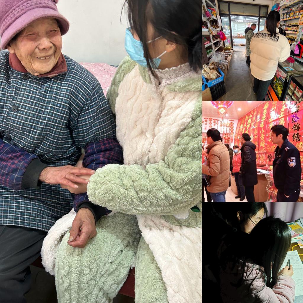 1月27日,在合肥市巢湖市栏杆集镇青岗村委会工作人员的带领下,宣传部委员行管231王倩芸为村里的空巢老人送温暖,陪同老人聊天解闷,提供精神慰藉和心理抚慰;在合肥市巢湖市柘皋镇,宣传部委员电商法231蒋依婷协助当地市场监管所等部门工作人员,以辖区校园周边的商铺、小吃店、文具店为重点,对食品安全、经营环境等进行检查;在阜阳市颍上县慎城镇光明社区,综合部委员电商法231陈睿雅参与寒假课业辅导志愿服务活动,耐心地为孩子们解疑释惑,帮助孩子们更好地完成寒假作业。