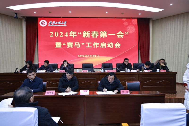 校党委书记张志宏指出,本次会议旨在跟进学习贯彻习近平总书记最新重要讲话重要指示批示精神,全面贯彻省委十一届六次全会和全省“新春第一会”精神,落实全国全省教育工作会议部署要求,是对学校2024年党的建设、事业发展进行再强调、再部署、再动员。他强调,要“看势子”,从国家形势、全省形势、学校发展形势着眼,顺势而为、借势而进、乘势而上,对标教育强国、七个强省、省域副中心城市建设目标,按照“一个中心、两个重点、三个方法”思路,深化改革、积极创新,扎实推进学校高质量发展,服务地方经济建设;要“照样子”,对照习近平总书记提出的“五个持续”的重点要求,照着样子抓好理论武装、推动解决问题,在党建、发展方面再接再厉,实现新的突破;要“甩膀子”,破除自满观念、守旧观念、畏难观念,树立进取意识、创新意识、奋斗意识,从“三抓”“三全六专”、个性化人才培养等7个方面完善“赛马”机制,以“竞争赛马”的成效促进学校事业的高质量发展;要“拿鞭子”,用好“一把尺子”“一张单子”“一根鞭子”,用自己“辛苦指数”换来学校发展“上升指数”和师生员工“幸福指数”;要“托盘子”,牢记全面从严治党永远在路上,守住廉政、稳定的底盘,做到守土有责、守土负责、守土尽责。