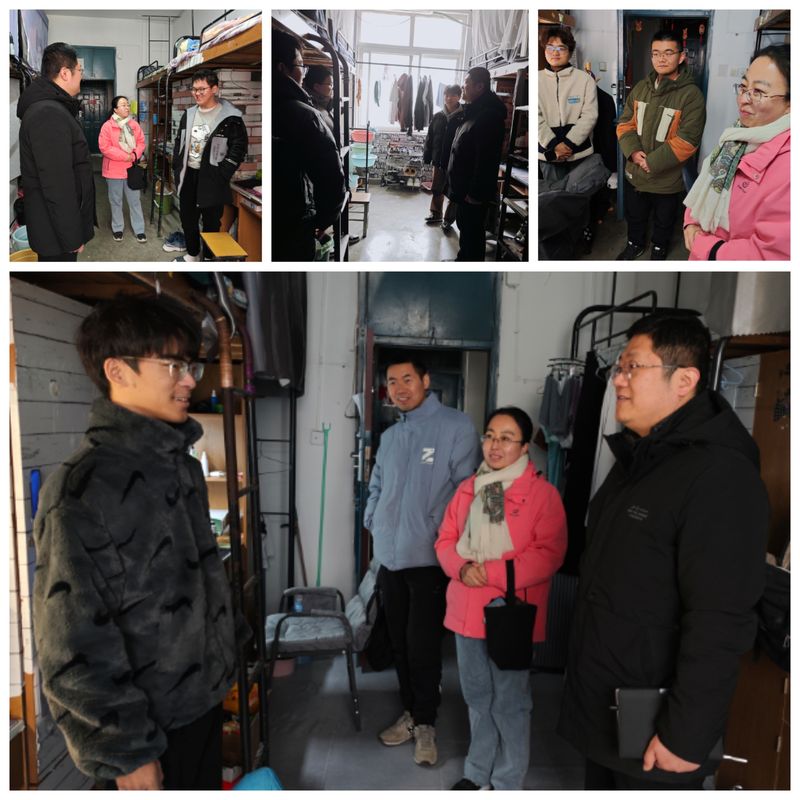 水心宝一行深入学生宿舍进行走访,在一间间宿舍之中与各专业同学面对面开展充分交流,认真了解学生在假期和开学后的所思所想,调研同学们在生活起居、人际交往、学业发展、人生规划等多方面问题和困惑,嘱咐学生们要理清思路,坚持自律,多方面发展。对宿舍中存在的卫生问题、安全隐患、室风建设等也提出了合理化的意见和建议,同学们纷纷表示感谢老师的关心与鼓励。