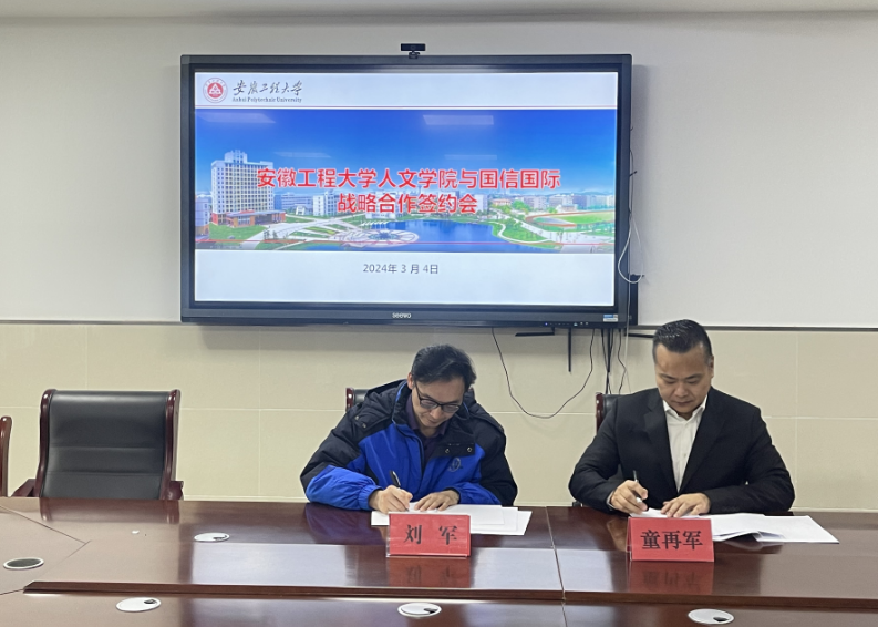 本网讯 3月4日,人文学院与国信国际工程咨询集团股份有限公司战略合作框架协议签约仪式在人文学院1307会议室举行。人文学院院长刘军与国信国际碳中和战略发展中心执行主任童再军代表双方签署协议,国信国际双碳事业部负责人贾顺、国信国际双碳事业部市场经理张佳民、大禹节水集团安徽分公司总经理汪元、人文学院副院长邹俊等参加签约仪式,仪式由人文学院党委书记刘一主持。