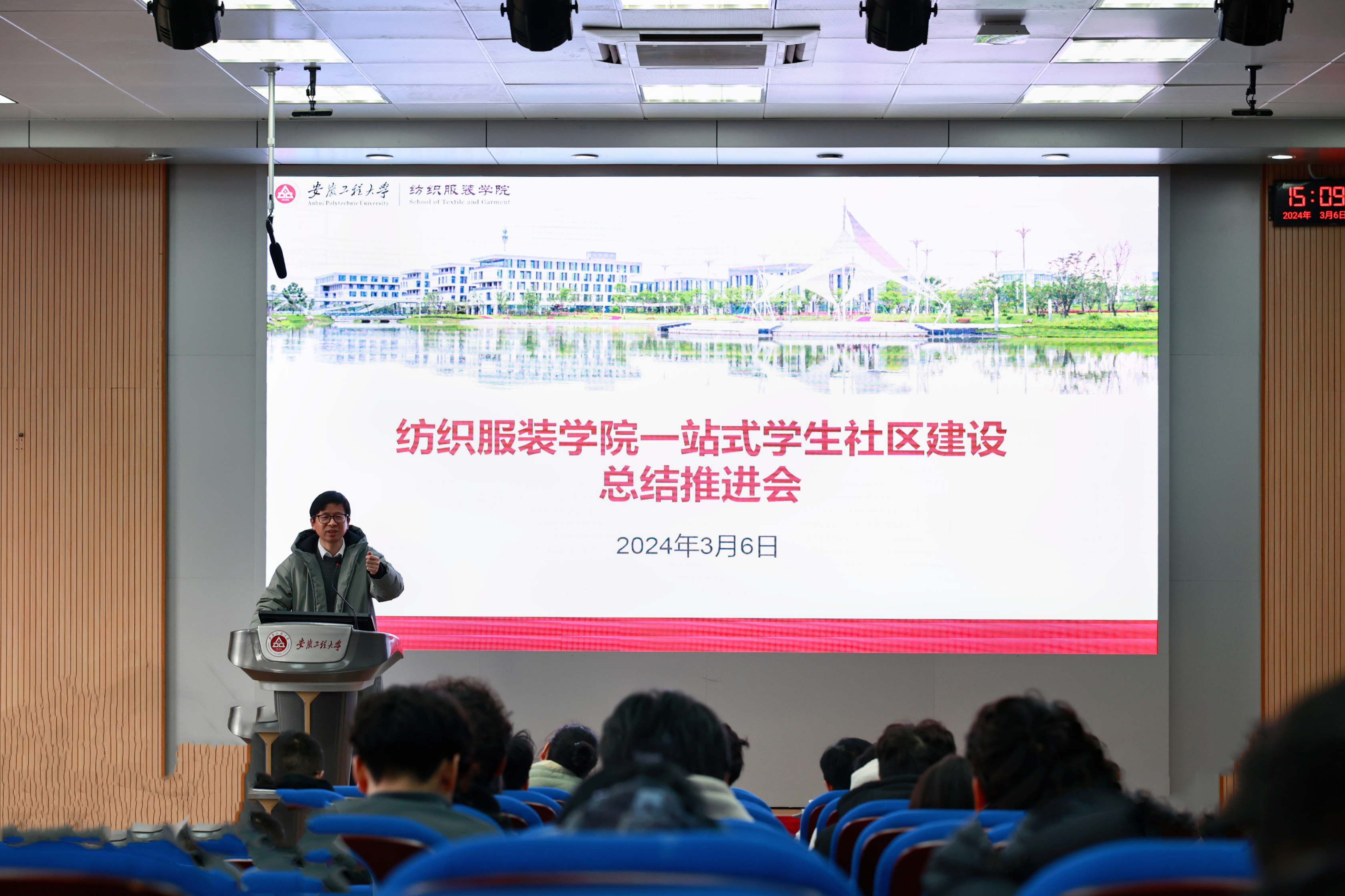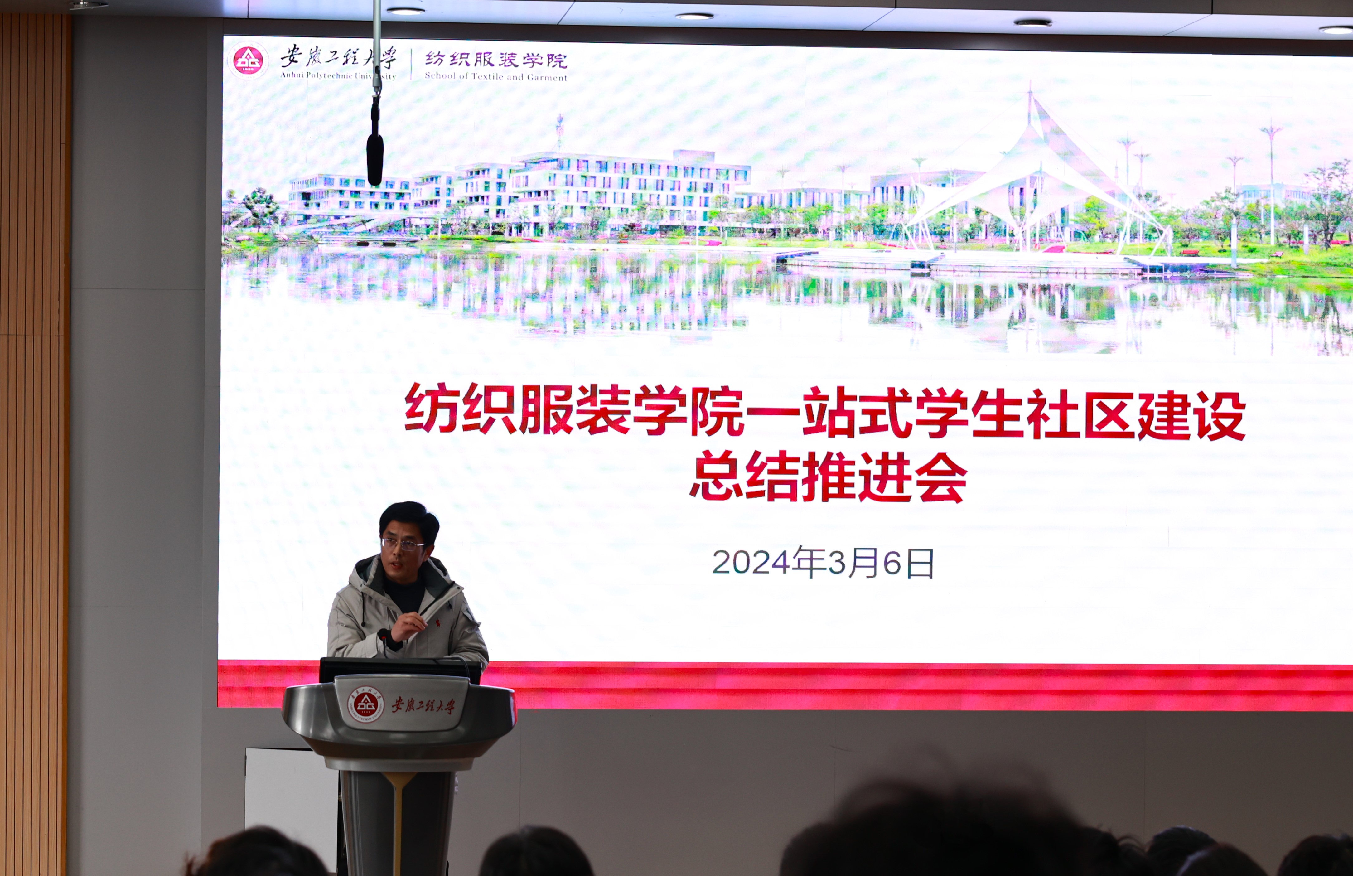本网讯 3月6日,纺织服装学院在5教117举行“一站式”学生社区建设总结工作推进会。学院党委副书记梁雪松、校宿管科科长、学生社区建设指导老师、社区学生骨干以及全体寝室长参加会议,会议由院团委书记陈倩主持。