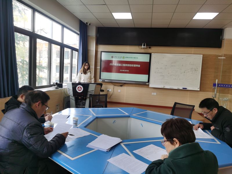 本网讯 为进一步规范质量工程项目的过程管理,加强教育教学项目内涵建设,提高人才培养质量,3月7日生物与食品工程学院在虚拟仿真中心举行2023年度质量工程检查验收答辩会。学院教授委员会代表、教学督导代表等担任评审,院长葛飞、本科教学办公室主任及部分教师、学生代表参加了答辩会。