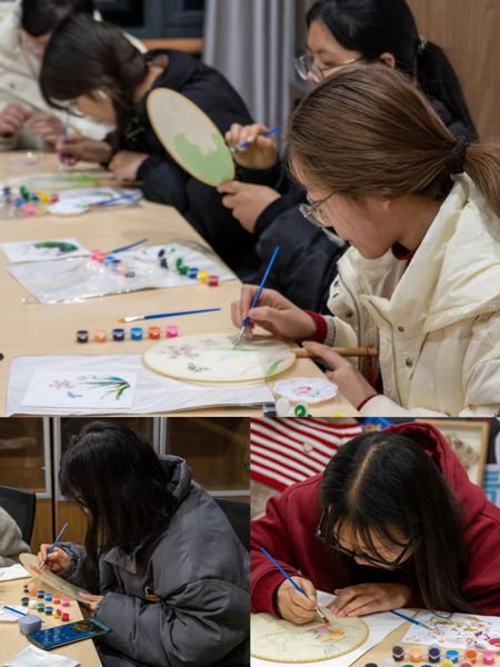 学院准备了朱砂手串、国风团扇、书法灯笼三种类型供师生制作。一把团扇,代表着团圆美满,吉祥如意。朱砂佩戴与身,有守护之意,将福气都带在手腕上。提笔写下珍藏于心的诗句,用灯笼祈愿未来美好生活平安喜乐。师生们都投身于制作当中,小巧的珠子在她们手中一颗颗被串起。纤细的画笔在团扇上勾勒出唯美的线条。师生们一边热火朝天的制作着手中的艺品,一边欢声笑语的洽谈着,欢乐的气氛充斥着整个活动室,在交流中师生们的距离又被拉进了一步。