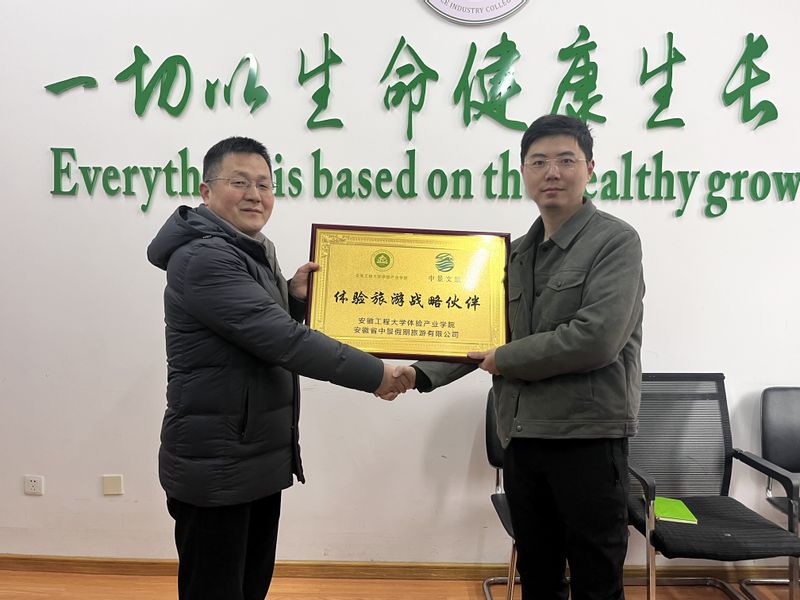 本网讯 3月6日,我校体育学院体验产业学院与安徽中景文旅共建体验旅游战略伙伴签约仪式顺利举行。安徽中景文旅董事长鲁成、总经理王萌萌、体育学院副院长谢叶寿、体验产业学院院长薛保红、体验产业学院副院长赵德勋及有关人员出席签约仪式,仪式由薛保红教授主持。