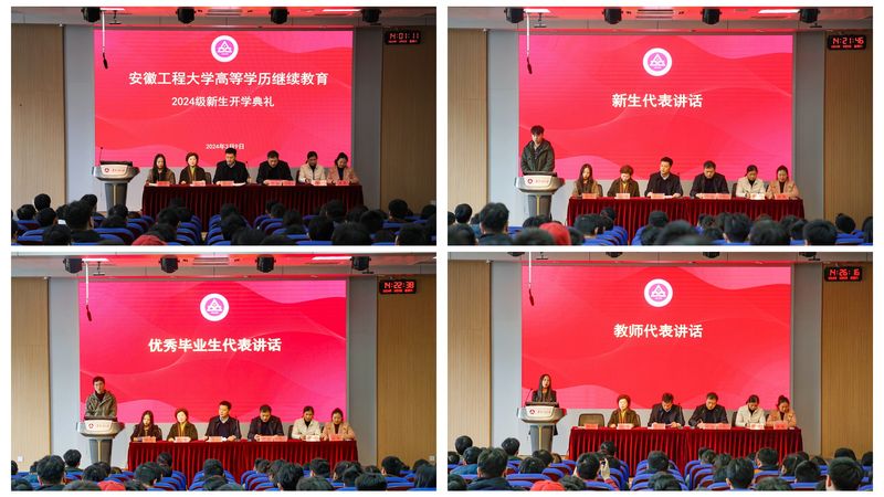 人文学院梅琼博士、2024级电气工程及其自动化专业汤志鹏、我校继续教育学院机械设计制造及其自动化专业毕业生方庆分别作为教师代表、新生代表、毕业生代表发言。