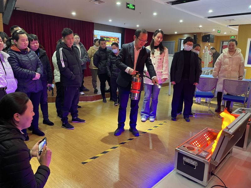在模拟演练环节,工作人员向大家讲解了灭火器操作的相关知识,系统讲解了灭火器的日常检查维护和正确使用方法,运用四字口诀“提、拔、握、压”对灭火器的操作方法进行现场示范,强调正确使用灭火器的重要性,指导大家如何正确使用灭火器进行灭火。期间,食堂从业人员积极参与其中,在工作人员的指导下现场体验了灭火过程,按照正确的步骤和方法,将燃起的大火迅速扑灭。