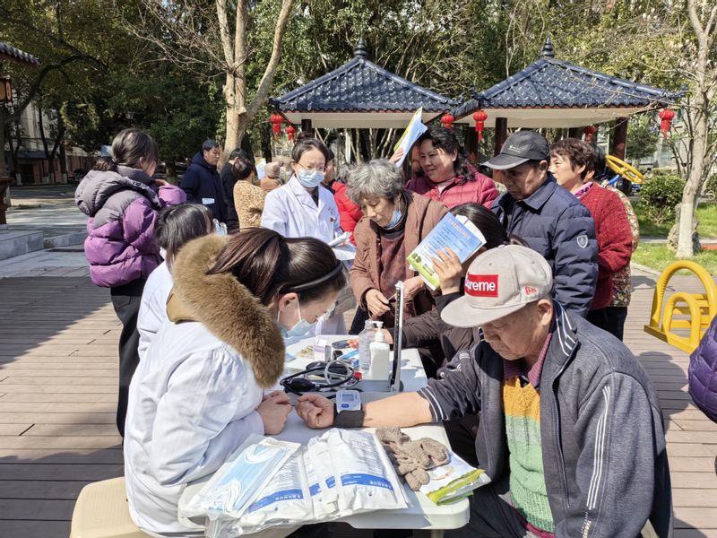 义诊送健康,志愿暖人心。为了把健康和温暖送到离退休教职工及家属身边,在第114个“三八”国际妇女节来临之际,后勤党总支第一党支部联合校医院在老教工小区开展爱心义诊和咨询活动。支部党员为现场人员发放宣传单页和医用口罩,协助医护人员做好秩序维护和医疗服务。