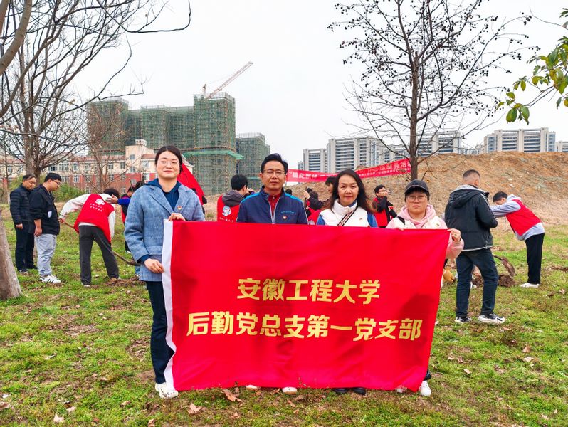 植树添新绿,党员先锋行。为贯彻落实“绿水青山就是金山银山”的绿色发展理念,引导学生树立植绿、护绿、爱绿的生态文明意识,后勤党总支第一党支部联合校园管理中心,组织学生开展义务植树公益活动。支部党员和学生通过自己的双手将香樟树苗植入土壤,为校园增添一抹春意,形成一道生机盎然的风景线。
