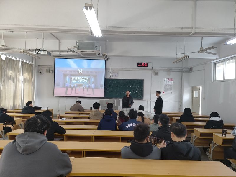 本网讯 3月19日,亳州古井销售有限公司南部战区校招负责人徐磊、芜湖市分公司总经理左养密等一行来生物与食品工程学院举行专场招聘会,招聘会在4教111举行,学院党委副书记王彦青、毕业班辅导员及来自多个学院的毕业班学生参加招聘会。