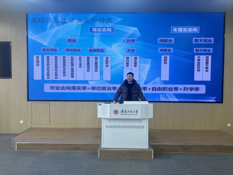 方玖胜指出,做好毕业生就业、升学是落实学校 “三抓”工作和“三全六专”育人实践的重要内容,也是坚持“以学生为中心”的有力举措。他鼓励同学们要调整好自己的心态,坚定自己的信念,充分了解复试与调剂政策,精心准备,再接再厉,争取成功上岸自己的理想院校。他要求同学们树立正确的就业观、择业观,不能“坐等靠”,要主动出击,抢占先机,先就业再择业,保持平实之心,从个人条件和实际出发,综合研判,做出选择。备考复试、主动就业要两手准备,切勿孤注一掷,可以多头进行,积极主动,定能如愿。同时,他提醒同学们求职应聘时要提高警惕,防范网上招聘诈骗、传销等非法组织,确保人身安全。