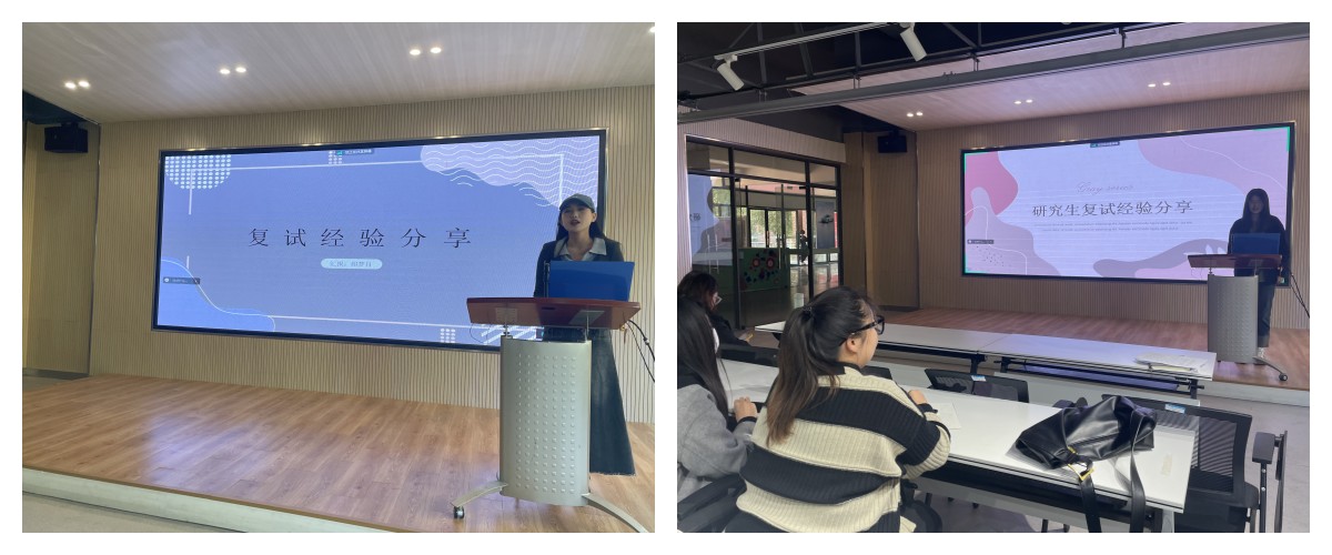 三位往届录取的研究生从时间把握、资料准备、心态调整、笔试、面试以及后期调剂等方面开展了细致全面的讲解,将自己总结的“备考宝典”全盘托出,并围绕大家关心的问题进行了详细解答,让同学们对复试及调剂流程和方法有了更加清晰和全面的认识。