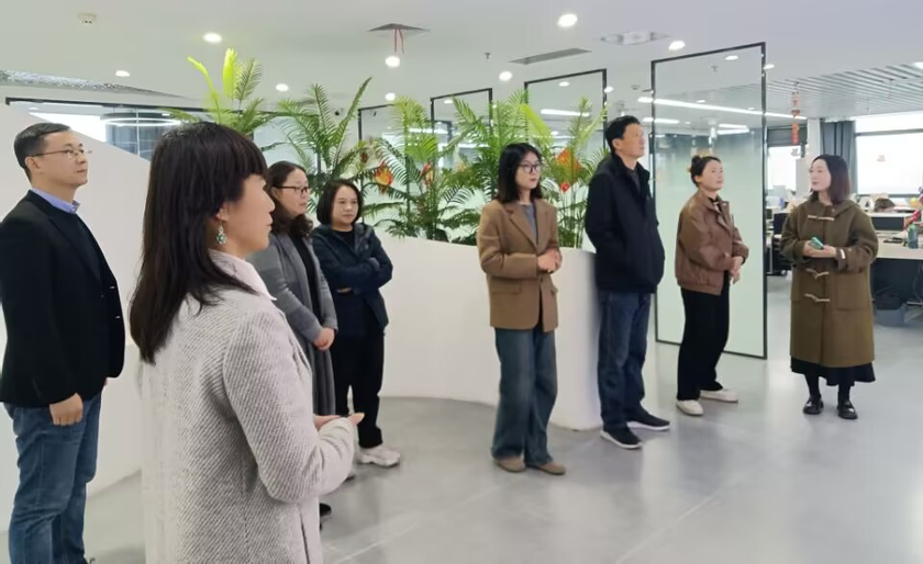 设计学院一行在企业方陪同下参观考察了企业的公司环境、组织结构、业务板块和直播基地。座谈会上,东昊科技人力资源总监杨东梅和校企合作业务主管从企业发展历程、企业文化、电商行业新业态、校企合作方式以及校企深度合作案例等方面介绍了企业的具体业务和合作重点,充分表达了企业与学院在复合型人才培养、实习实训基地建设等方面深入合作的意愿。胡家增等表达了设计学院此次访企拓岗开展校企合作的目的,深入阐述了学院与企业在产教融合、实习实训基地建设、企业工作坊建设、技术交流与合作等方面的工作思路,就校企合作框架与企业方作了充分讨论与交流。走访过程中,胡家增一行还详细询问了学院校友和实习生在公司的工作生活情况,调研了解企业对毕业生的满意度。