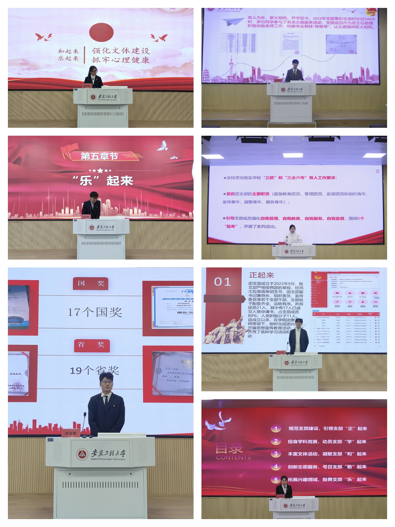 比赛中,各团支部按照赛前抽签顺序依次汇报团支部建设成效和成果,计算机222团支书文杰通过凝练红心向党、厚积薄发、心系社会、快乐团建四个主题,展示出团支部2023年开展的各类活动和支部成员团结拼搏的精神风貌,他们表示要在团结友爱的集体中绽放自己的青春力量,奏响青春之歌。数据科学221、数据科学222团支部聚焦六个“起来”进行工作汇报,凸显了“三全六专”育人工作在团支部建设的实践成效,让“三全六专”育人工作扎根生花。各团支部风采展示主题鲜明、特色显著、内容充实,充分呈现我院学子勤学好进、脚踏实地、踔厉奋发的良好形象。