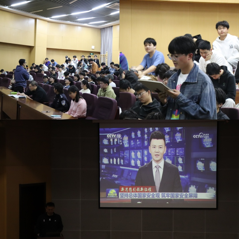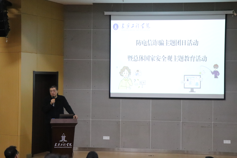 本网讯 为进一步落实落细“三抓”工作教育,提升全体师生总体国家安全观教育,高质量开展防范电信诈骗活动。4月10日,建筑工程学院在C座3楼报告厅开展防电信诈骗主题团日活动暨总体国家安全观主题教育活动,城东派出所民警汪家丽、李有文,院党委副书记、纪委书记张礼波、保卫处赵荣俊、院团委负责人、辅导员及各年级各专业各班级全体寝室长参加活动。
