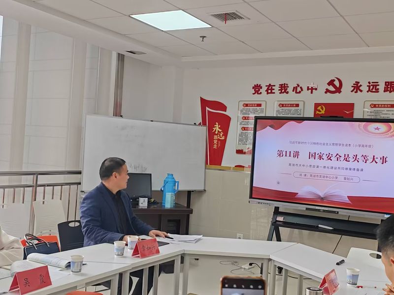章如兴、吴霞、陈春辉、杨孝旭四位思政课教师围绕“国家利益与国家安全”的教学主题分别进行了教学展示及说课,就自身教学思路与教学流程等进行了分享与交流,教学设计从小学阶段侧重情感认同到初高中阶段价值引领到大学阶段的全方位的政治、思想、理论与情感认同,充分展现了我市学校各学段在推动思政课改革创新的努力与探索,也体现了大中小学思政课一体化建设集体备课会的必要性、重要性和实效性。