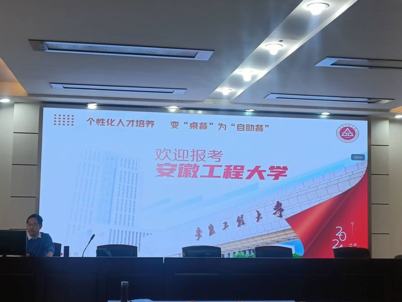 讲座前,陶锋一行与和县一中校长潘德安、副校长沈强、教导处主任宋晓虎等就推进“高中高校一体化”建设进行了交流,介绍我校学科专业设置、个性化人才培养模式等相关情况,并在专题讲座前播放学校招生宣传片。