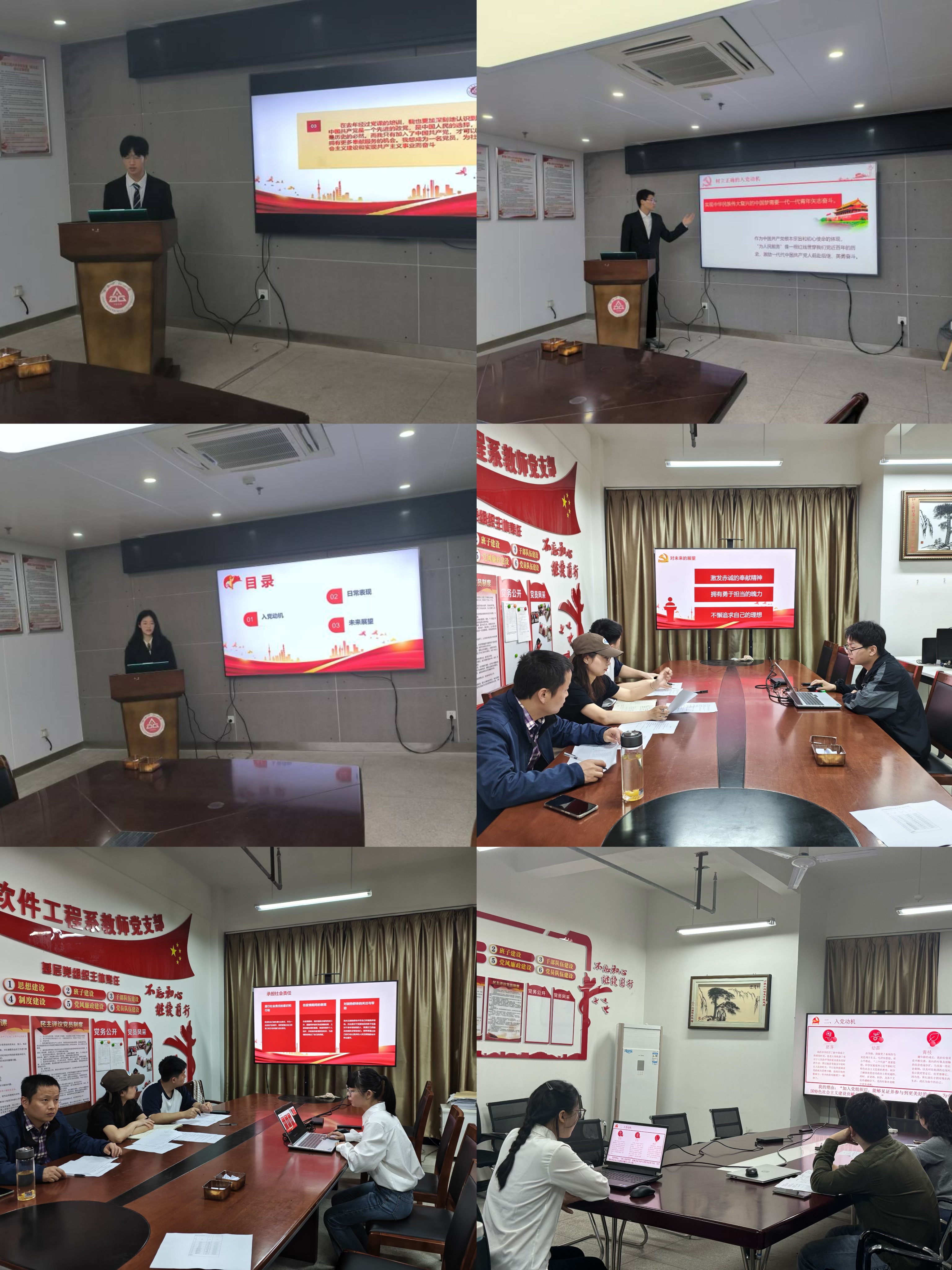 答辩会由个人陈述、抽题问答以及评委互动三个环节组成。个人陈述环节,答辩人从个人思想、学习情况、作用发挥、志愿服务等角度切入,严肃真诚地阐明入党动机、对党的认识以及未来展望,直观详细地展示了个人风采和优良党性,展现了良好的综合素质。抽题问答环节,答辩人通过结合自身经历,运用所学党的相关知识对所抽中的问题进行具体回答。答题结束后,与会党员评委围绕党的基本理论知识、党性修养、“三全六专”作用发挥、基层党组织建设等方面对答辩人进行提问。本次拟发展对象答辩活动过程严肃而热烈,答辩人用丰富又充实的汇报,展现了党员拟发展对象向党组织靠拢的良好风貌与综合素质。
