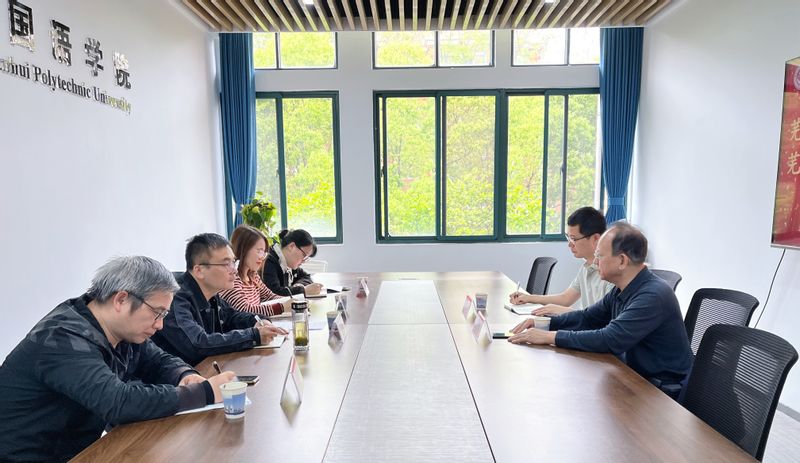 本网讯 4月16日,外国语学院与来访的芜湖市宝马职业培训学校校长徐新春、芜湖飞人教育有限公司董事长谷秦汉一行进行项目合作洽谈,副院长李新国、韩利敏、英语系骨干教师代表参加了交流。