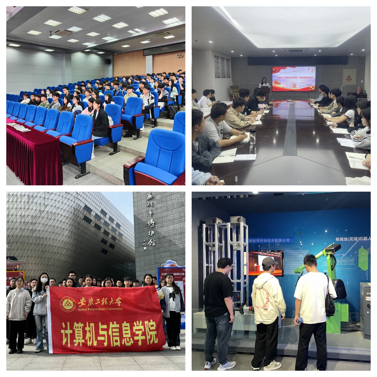 以躬身实践助力全面发展。带着问题学习方能学深学透,以所学知识进一步思考、实践,方能获启迪、会真知。4月19日上午,在培训班班主任瞿陆子慧的带领下,全体学员深入学习全国“两会”精神,学员们以小组为单位,围绕全国“两会”精神展开交流研讨,对政府工作报告中“全面贯彻党的教育方针,坚持把高质量发展作为各级各类教育的生命线”等有关教育的内容进行热烈讨论,培训班班长韩兴表示:“作为当代青年,我们要树立远大理想、勇立时代潮头,敢于并善于将自身所学的理论知识转化为推动经济社会发展的宝贵资源,努力成为堪当民族复兴重任的时代新人。”4月20日上午,全体学员在班主任的组织带领下,集体参观了芜湖市博物馆,开展实践教育活动。整个场馆以芜湖的历史沿革为脉络,生动再现了芜湖的发展历程。同学们纷纷惊叹于芜湖的悠久历史与传统文化,深刻体会到了自己身处的这片土地所经历的峥嵘岁月和沧桑巨变,唤起了对未来建设美好芜湖的极大憧憬。同时,学员们也更加坚定了进一步发挥模范带头作用的理想信念,力争用实际行动传播青年学子的青春正能量。