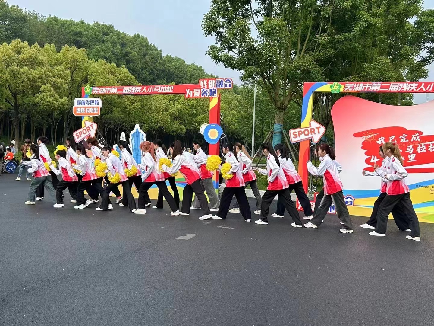 本网讯 4月23日,由芜湖市残联、市民政局、市体育局和体育学院等多部门联合举办芜湖市第二届残疾人“残健融合 为爱奔跑”小马拉松活动在雕塑公园举办。为确保比赛的顺利举办,学院团委学生会组织了一支30余人的志愿服务团队参与到比赛各项服务工作中,发挥了专业特长,展现了安工程学子青春洋溢和无私奉献的精神面貌。