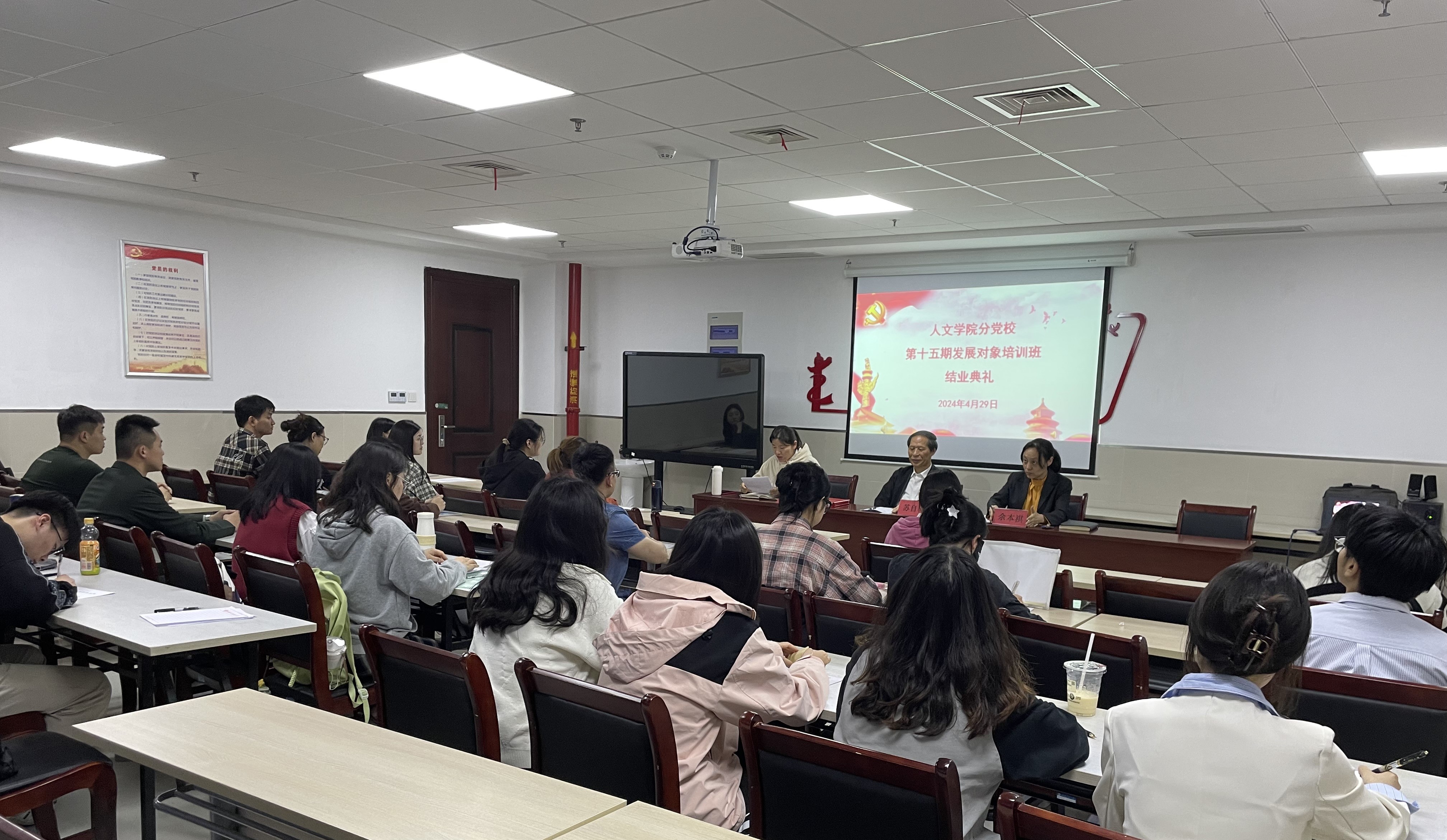 本网讯 4月29日,人文学院分党校第十五期发展对象培训班结业典礼在学院1415室顺利举行。校党校督导组成员苏自林现场督导,院党委副书记、分党校副校长余本祺出席结业典礼并讲话,第十五期发展对象培训班全体学员参加典礼。典礼由学院组织员、培训班班主任李娜主持。