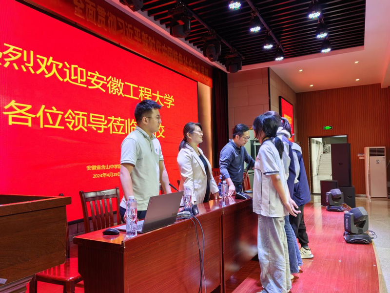 本网讯 根据学校2024年招生宣传工作部署安排,4月29日,材料科学与工程学院牵头赴含山中学开展2024年本科招生宣传暨“名师进中学”专题讲座。学校心理健康教育中心主任金艾裙开讲题为“减压赋能、逐梦未来”的心理健康教育专题讲座。材料科学与工程学院副院长陶锋做招生宣传。含山中学副校长高学宁主持宣讲会,含山中学团委书记、高三年级组组长许生全程参与。