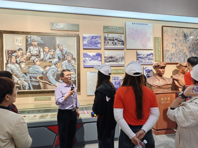 5月2日上午,研学营在安徽金寨红军广场景区举行了庄重的开营仪式。大家沿着红二十五军长征的足迹先后来到河南光山县、罗山县。在这片被誉为红色摇篮的土地上,同学们参观了花山寨会议旧址、邓颖超祖居、王大湾会议旧址及罗山县红二十五军长征纪念馆等地。通过参观珍贵的图片资料和历史文物,聆听感人至深的革命党课,同学们深刻感受到了革命胜利的来之不易,更加坚定了传承红色基因、弘扬革命精神的决心。每一处遗址都承载着中国革命及先辈们的历史记忆,每一段红色故事都激励着后辈青年不断砥砺前行。