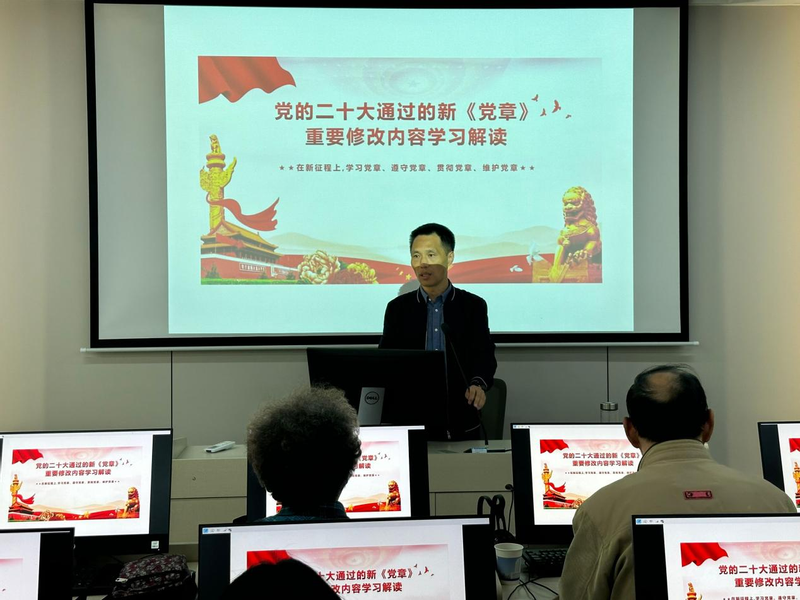开班仪式结束后,马克思主义学院副院长刘德军教授为同学们做了以《中国共产党章程》为主题的“开班第一讲”,报告从党的二十大通过的新《中国共产党章程》的修改意义、学习内容、重要修改三个方面解读其核心要义和精神实质,从而引导广大学员提高党员意识、增强党性觉悟。