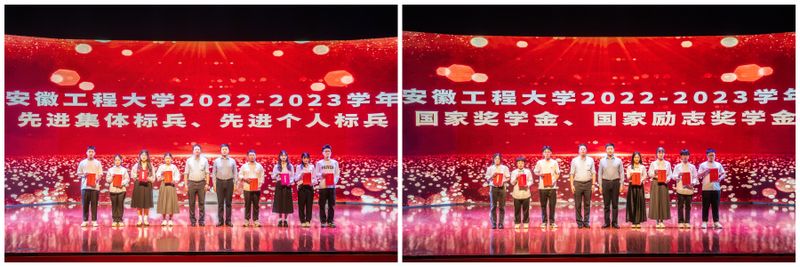 活动期间,学校领导和嘉宾为2022至2023年度“先进集体标兵”“先进个人标兵”“国家奖学金”“国家励志奖学金”、校级“两红两优”、“安徽合力杯”十佳大学生、大学生创业大赛、建筑模型设计制作大赛、省级及以上荣誉奖项获奖者颁奖。
