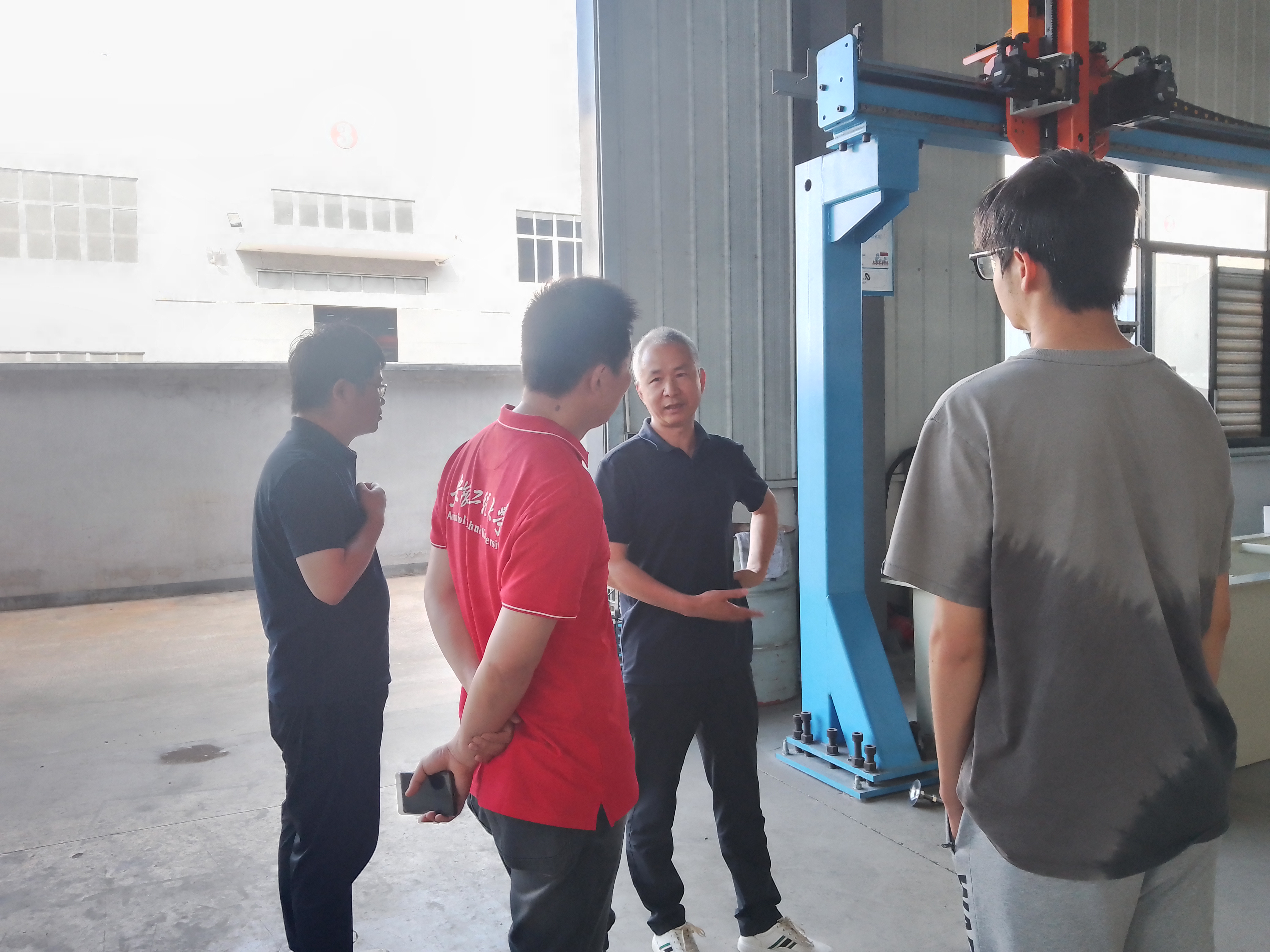 下午,刘涛、章平及陈蒙继续前往广德泓益智能制造有限公司开展合作调研。广德泓益智能制造有限公司俞光明总经理对安徽工程大学计算机学院老师一行的到来表示欢迎,重点介绍了双方前期计划开展合作的机械手自动化搬运生产线。刘涛表示产教融合、校企合作是当前趋势,双方的合作既有助于提升企业技术,形成的成果又可以作为教学案例融入课堂教学,提升学校人才培养的质量。之后,双方就在现场就合作项目的具体需求、技术等进行了深入交流。