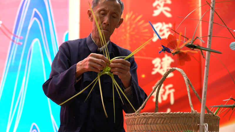 在示范主题团日活动的第二阶段,棕编技艺传承人进行现场棕编展示,带领同学们共同体验非遗技艺,感受传统工艺之美。
