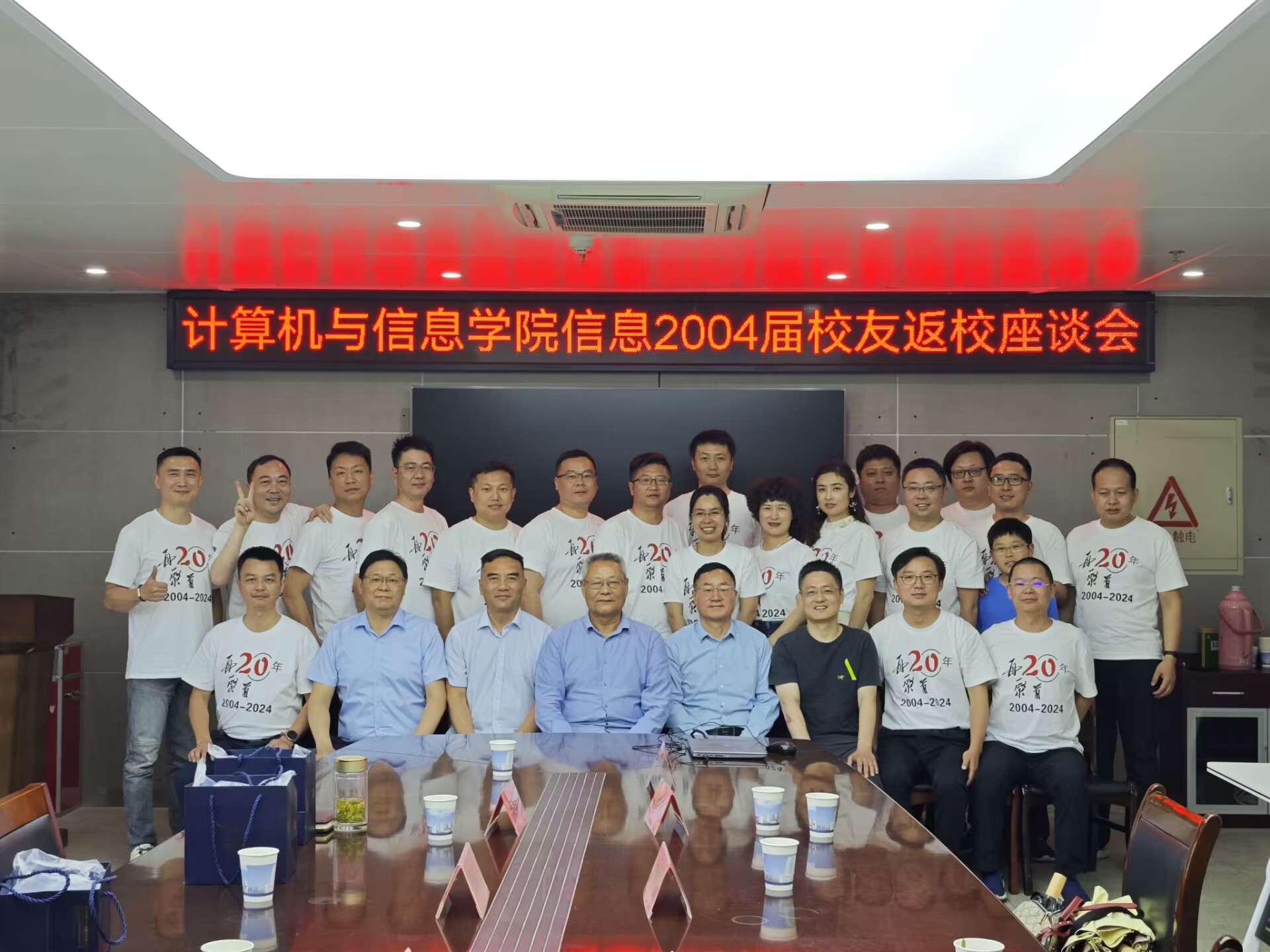本网讯 春未尽,夏初临,5月18日,计算机与信息学院迎来了信息2004届20多位校友,师生欢聚一堂,在学院会议室举行了返校联谊座谈会,共同追忆青春,展望美好未来。学院党政领导、时任系部领导、班级辅导员、教师代表参加座谈会,会议由院长助理严楠主持。