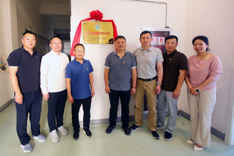 双方就博士工作站下一步工作开展进行了深入交流与座谈。各相关单位负责人就全力支持做好工作站作表态发言,并就服务百姓需求、扩大服务人群范围、开设多样性专业课程、打造更好活动场所、提供更优质服务等方面提出计划建议。并共同参观了仁和运动健康馆。体育学院党委书记杨善祥与鸠江区文化馆副馆长董伟馆长,共同为仁和社区运动健康服务博士工作站揭牌。