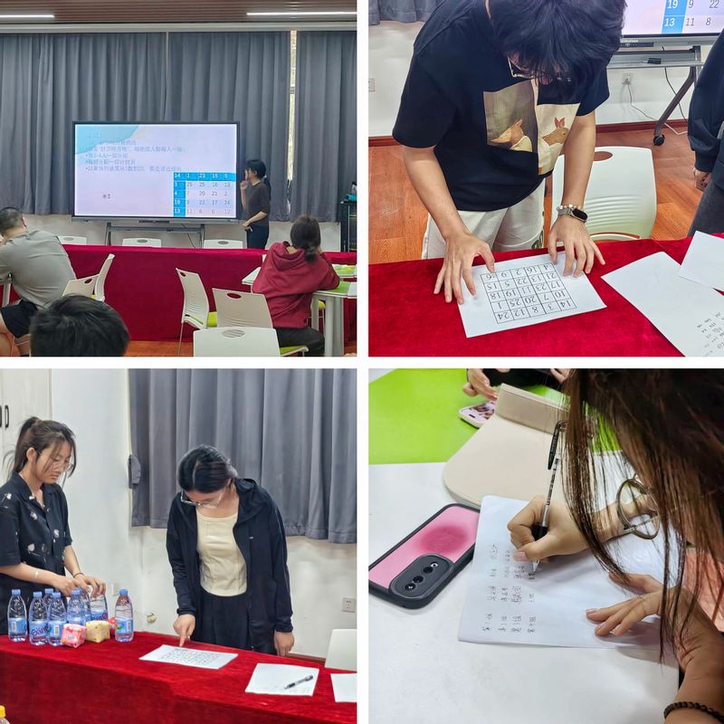 脑力挑战能提升认知能力,包括记忆力、注意力、逻辑思维能力等。进行脑力挑战有利于培养坚韧不拔的意志和毅力。活动采用经典的舒尔特方格进行专注力挑战,在5*5方格中,有随机排列的数字1-25,参与者分为小组,一边用手按照1-25的顺序指出数字,一边大声读出来,用时最少的小组获胜。同学们争分夺秒,现场气氛紧张又热烈,大家在集中注意力的同时锻炼了综合操作技巧,有效提升了手眼协调能力。