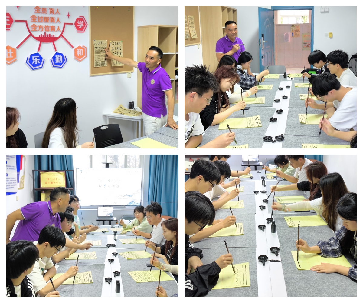 本网讯 为传承和弘扬中华优秀传统文化,营造浓厚的学习交流氛围,推深做实“三全六专”育人实践,进一步推动学院书香社区建设,5月28日,计算机与信息学院在“寓”心育人青年服务中心暨“青年之家”学生会服务站举办师生书法沙龙活动,学院正处级组织员周毅仁带领同学们共同感受中华书法的独特魅力。